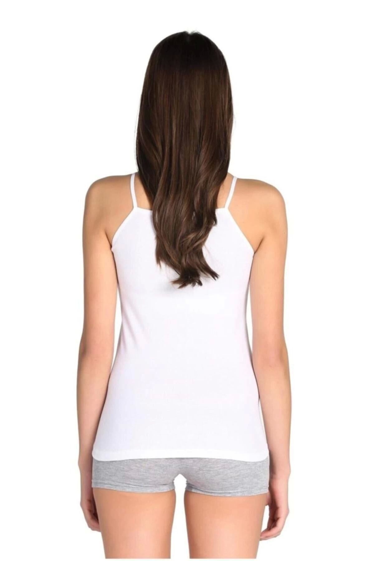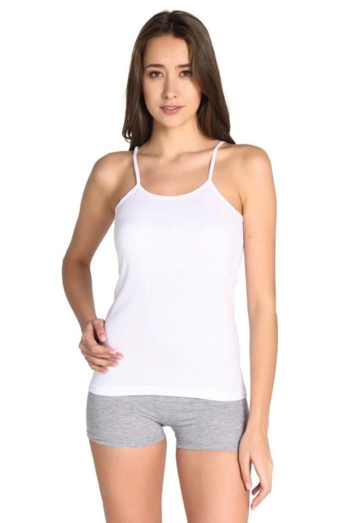 3 Adet Kadın Beyaz Pamuklu Ribana Ip Askılı Atlet