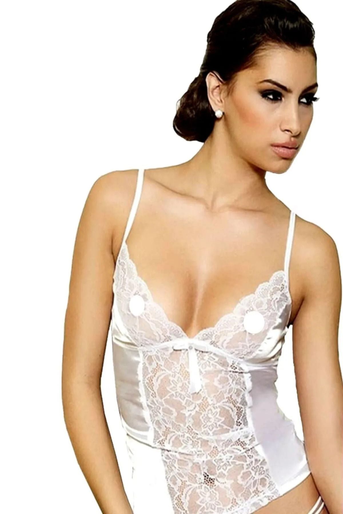CANYILDIZ Kadın Beyaz Ortası Tül Dantelli Ip Askılı Atlet