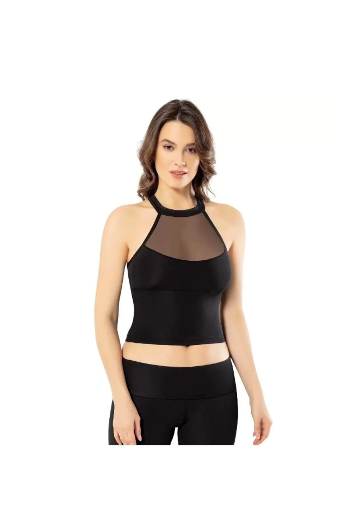 Çapraz Askılı Tüllü Göğüs Pedli Crop Atlet