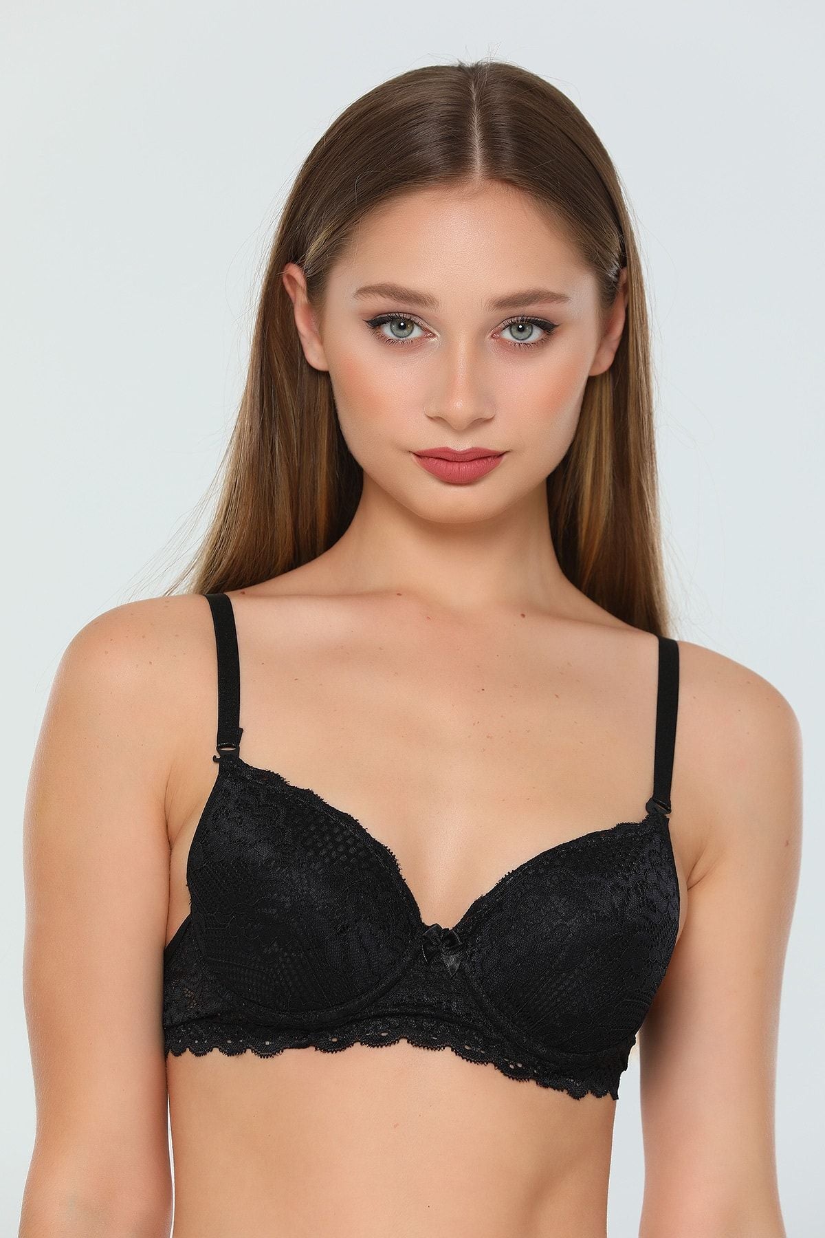 Liza Destekli Dantelli Balenli Mürdüm Kadın Sütyen